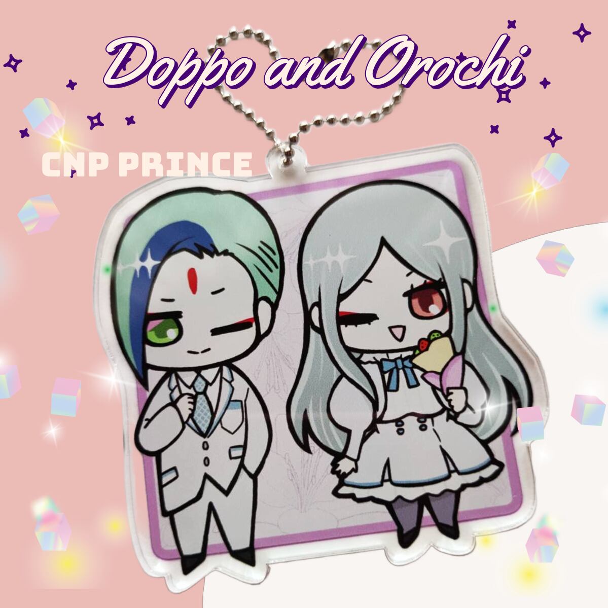 【NFT付き】アクリルキーホルダー【蛇神家の謎 オロチ・独歩】は、CNPプリンスノベルゲーム「蛇神家の謎」のキャラクターがデザインされたアクリルキーホルダーです。こたえっくす先生が描きおろしされたオロチと独歩さまの魅力が詰まったアクリルキーホルダーです!